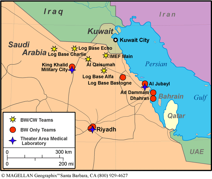Figure 3. Location of sampling teams and theater area medical laboratories