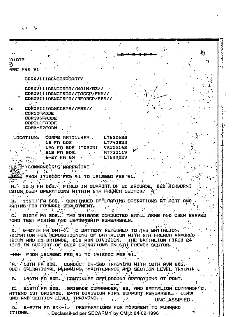 Document 3 f:/Week-08/BX000015/DUTY LOG 18 CORPS ARTY SITREPS G3 FEB 91/commander's narrative 17 - 18 feb 9:04109619191927