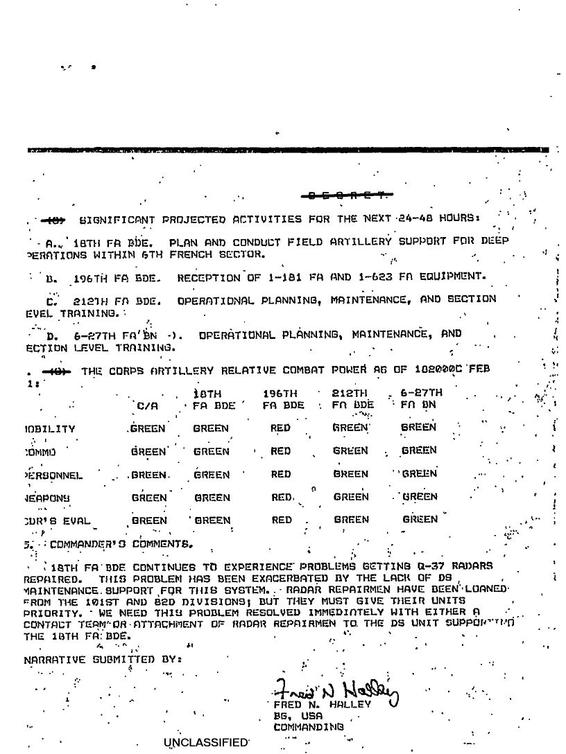 Folder Title = DUTY LOG 18 CORPS ARTY SITREPS G3 FEB 91