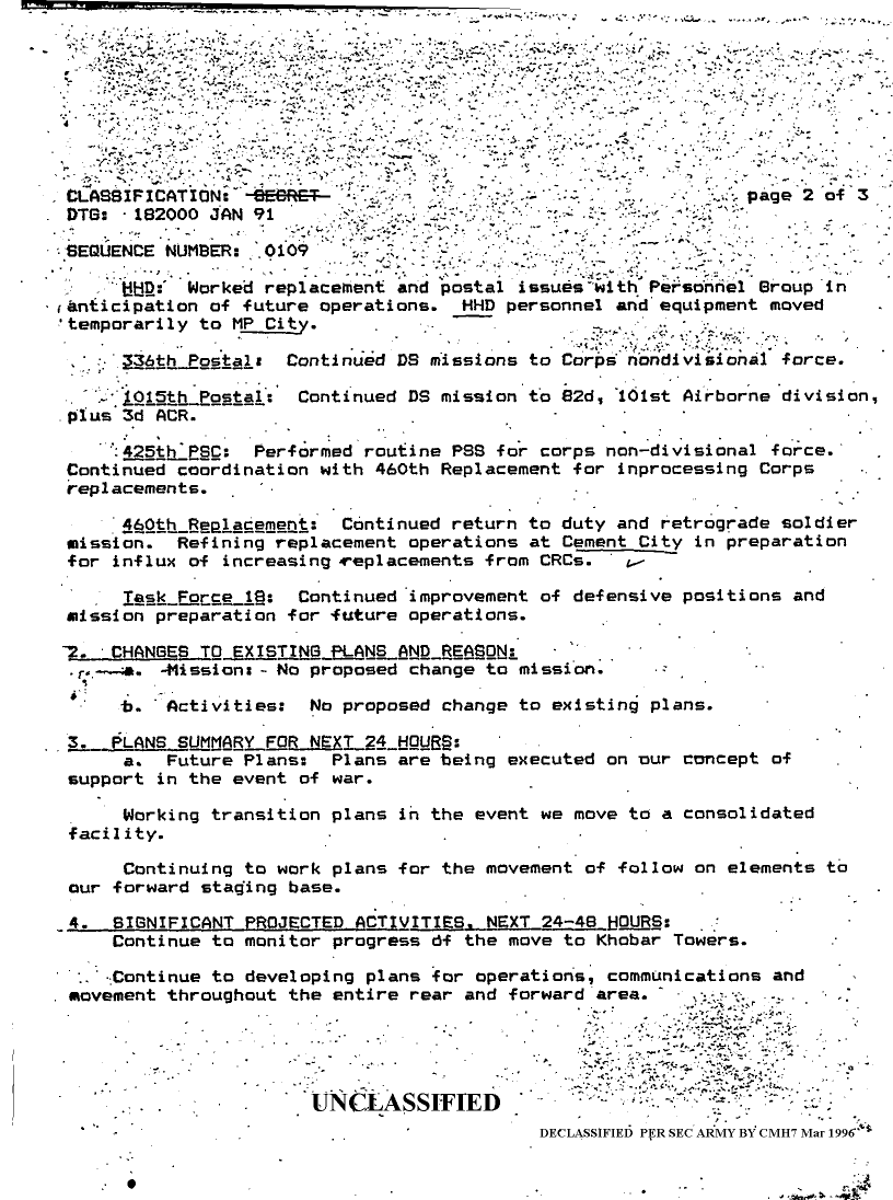 Document 3 f:/Week-08/BX000015/DUTY LOG 18 PER GP SITREPS G3 JAN 91/major significant activities summary 182000 jan 91:0410961919198