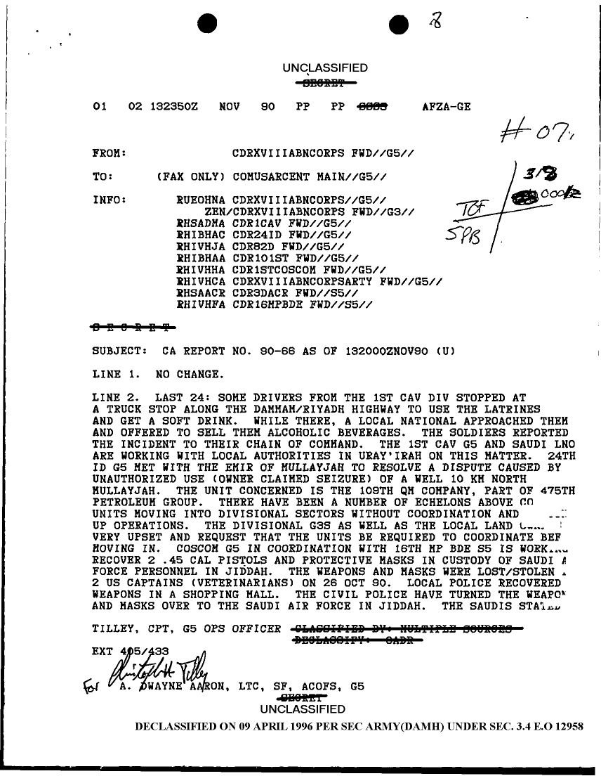 Document 19 f:/Week-13/BX000005/DUTY LOG G5 14 NOV 90/daily staff journal or duty officers log:041796160120116