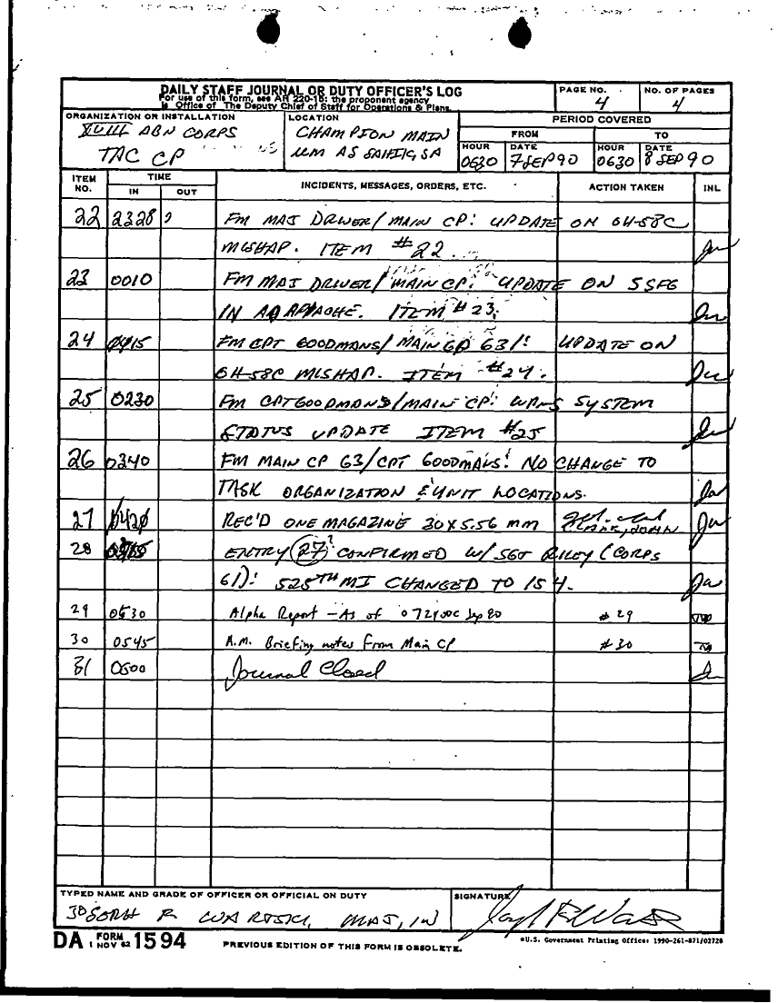 Document 47 f:/Week-14/BX000007/DUTY LOG G3 TAC CP 7 SEP 90/daily staff journal or duty officers log 7 sep t:04179616012077
