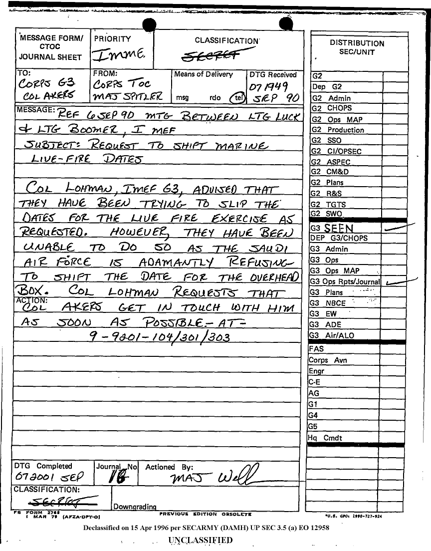 Document 47 f:/Week-14/BX000007/DUTY LOG G3 TAC CP 7 SEP 90/daily staff journal or duty officers log 7 sep t:04179616012077