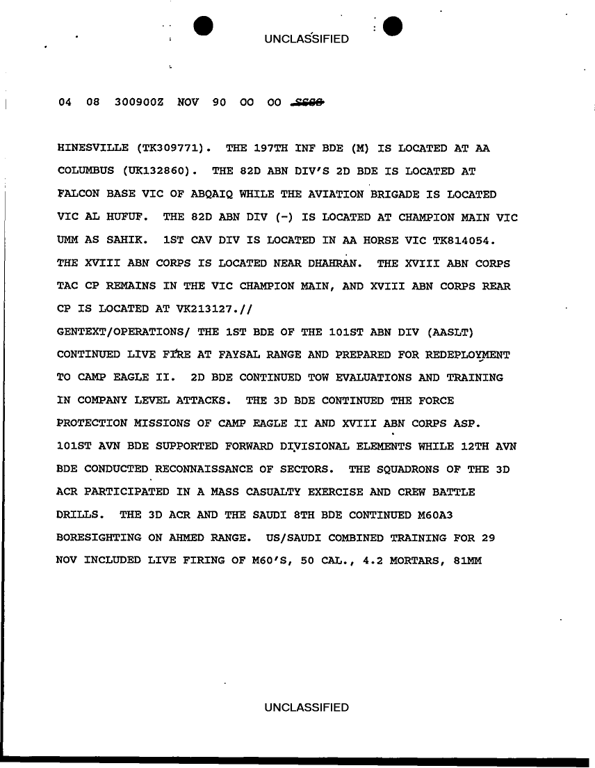 Subject = DAILY STAFF JOURNAL OR DUTY OFFICERS LOG 30 NOV TO 1 DEC 90