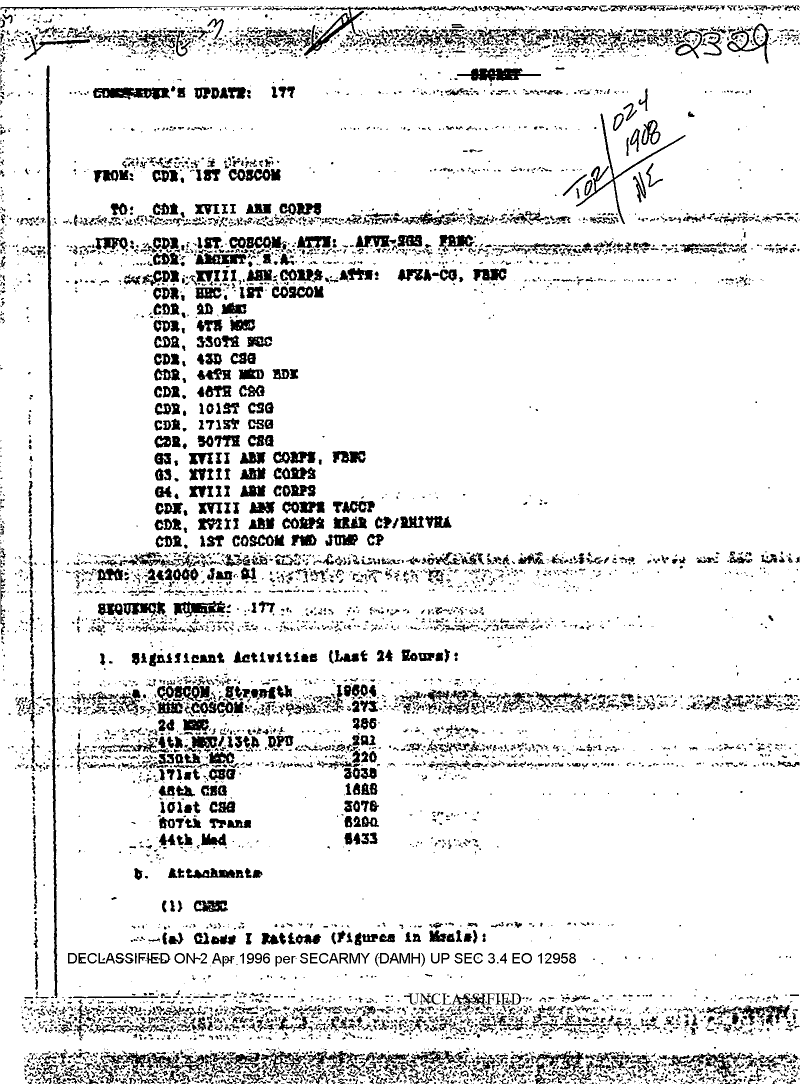 Document 10 f:/Week-08/BX000015/DUTY LOG 1 COSCOM SITREPS G3 JAN 91/significant activities sequence 177:04179616012020
