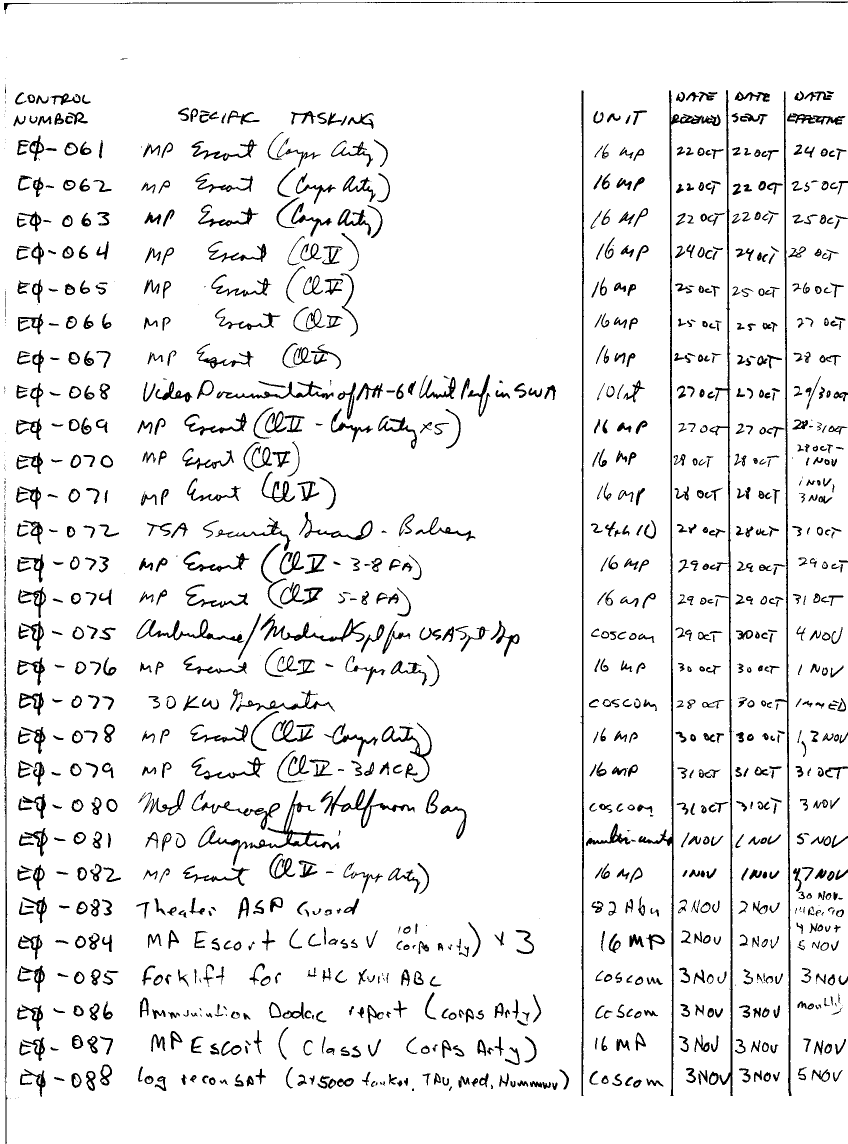 Document 7 f:/Week-08/BX000018/DUTY LOG CORPS TASKING OFFFICER FILES MASTER CON/specific taskings 1991:0417961601204