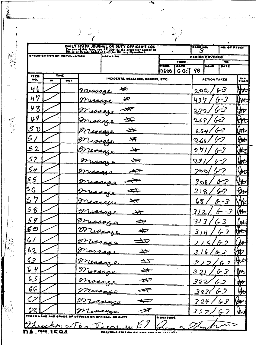 Subject = DAILY STAFF JOURNAL OR DUTY OFFICERS LOG 30 SEPT 90