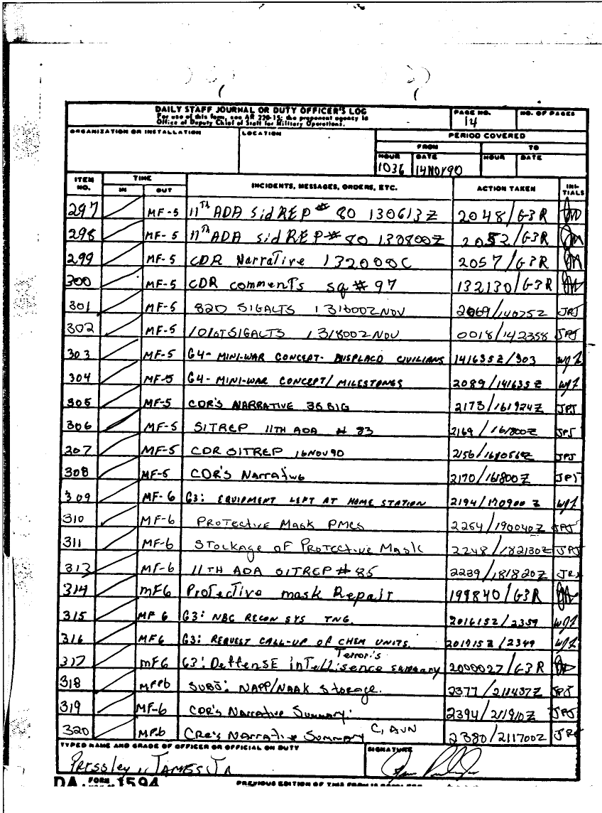 Subject = DAILY STAFF JOURNAL OR DUTY OFFICERS LOG 30 SEPT 90