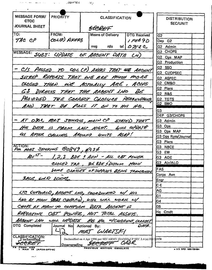 Document 17 f:/Week-12/BX000024/DUTY LOG G3 TAC CP 31 JAN 91/daily staff journal or duty officers log:041796160120115