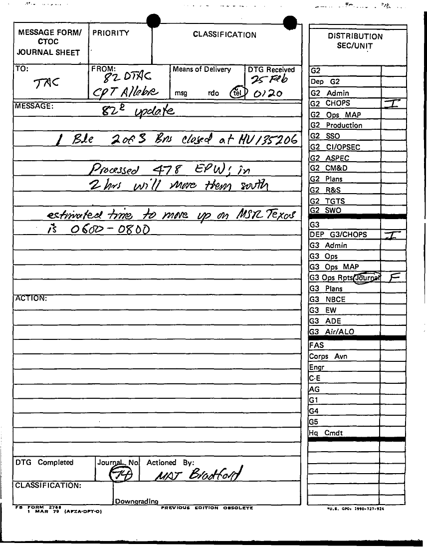 Document 132 f:/Week-12/BX000024/DUTY LOG G3 TAC CP 24 FEB 91/daily staff journal or duty officers log:041796160120117