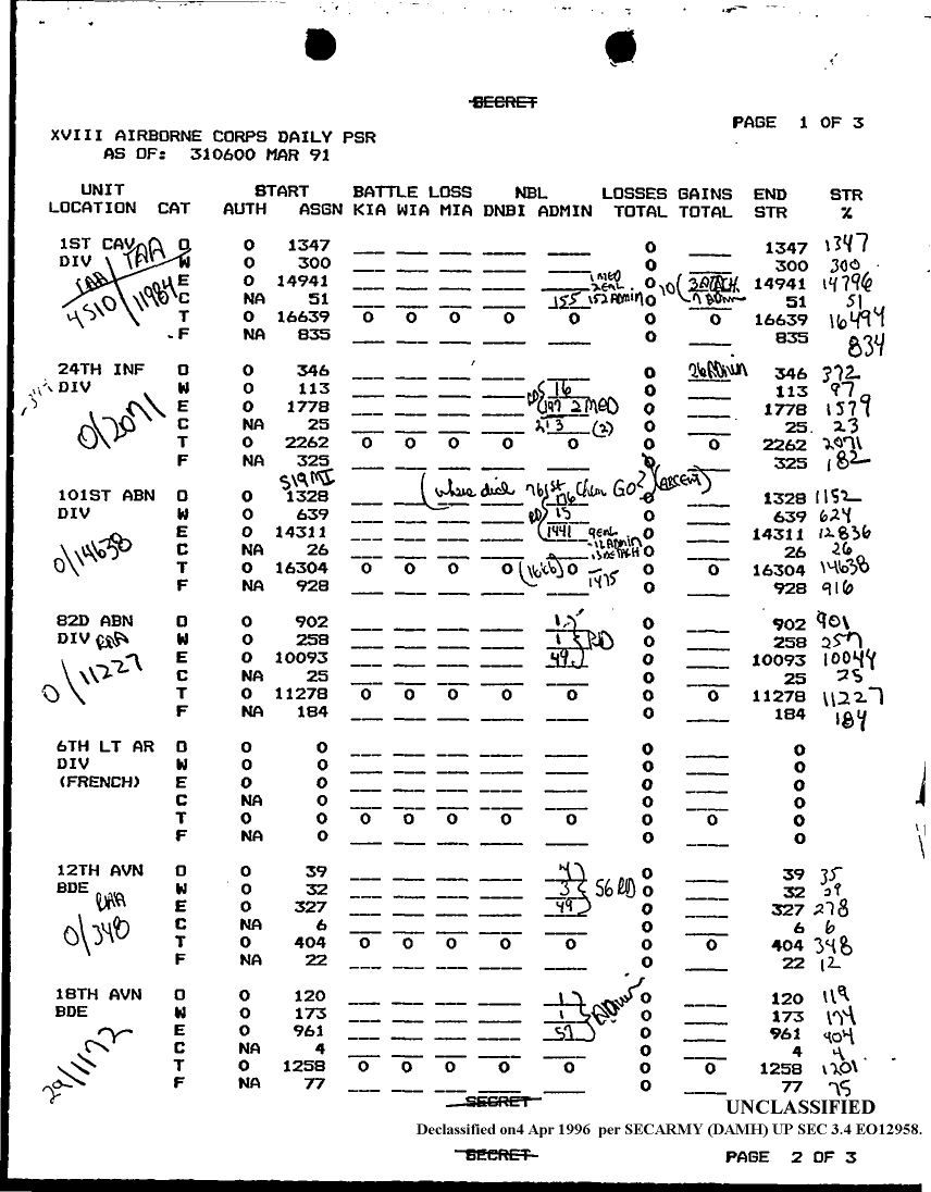 Document 6 f:/Week-12/BX000004/PERSONNEL STATUS REPORTS 28 MAR-2 APRIL 91/xviii airborne corps daily psr 31 mar 91:041796160120128
