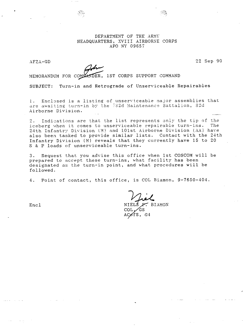 Folder Title = DUTY LOG G3 CORPS POLICY LETTERS SEP 90