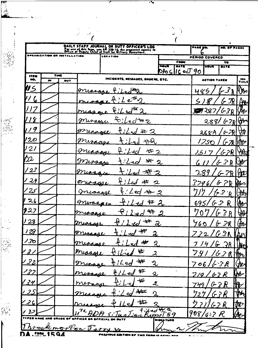 Subject = DAILY STAFF JOURNAL OR DUTY OFFICERS LOG 30 SEPT 90