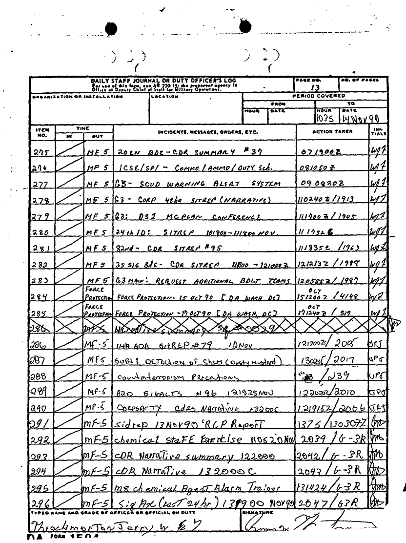Subject = DAILY STAFF JOURNAL OR DUTY OFFICERS LOG 30 SEPT 90