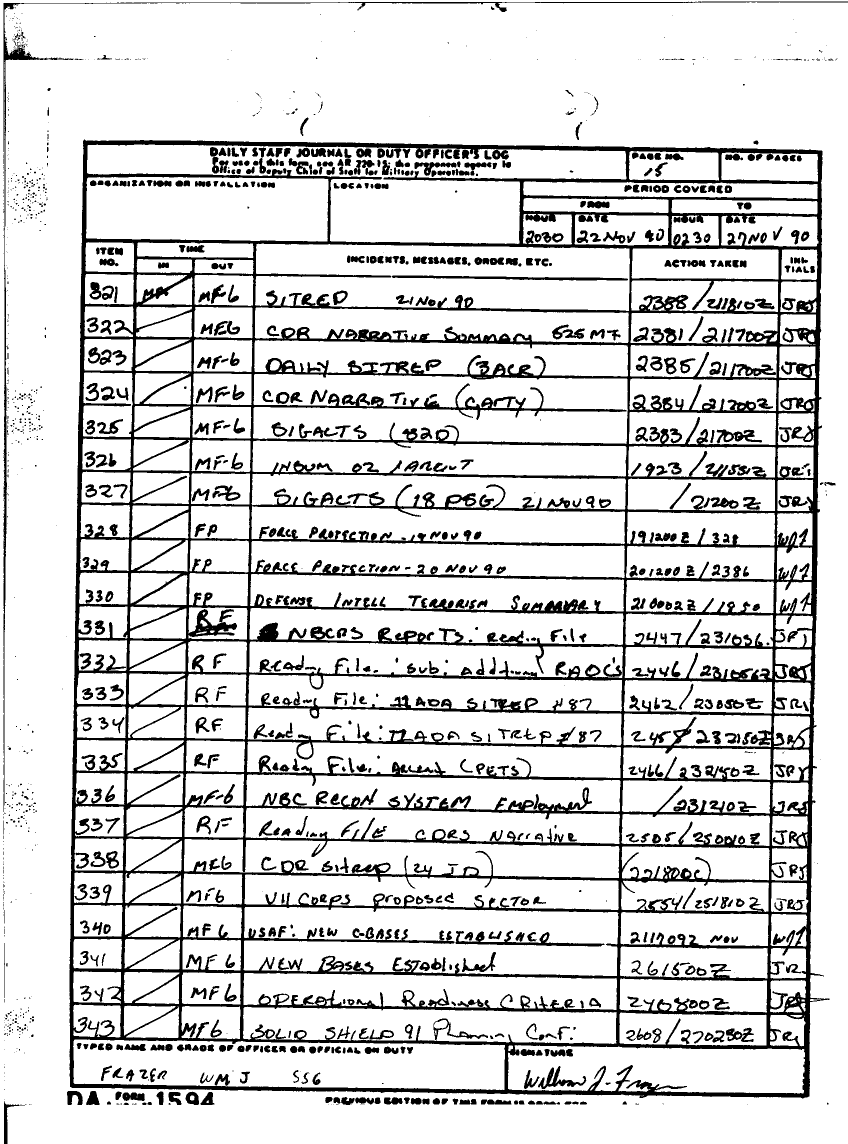 Subject = DAILY STAFF JOURNAL OR DUTY OFFICERS LOG 30 SEPT 90