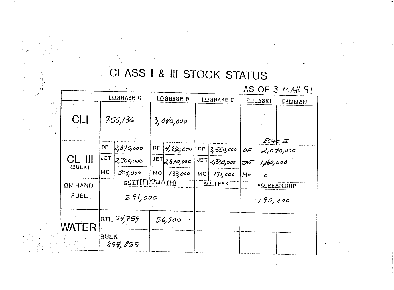 Document 7 f:/Week-10/BX000017/DUTY LOG MAR 91/class i and iii stock status 3 mar 91:04179616012023