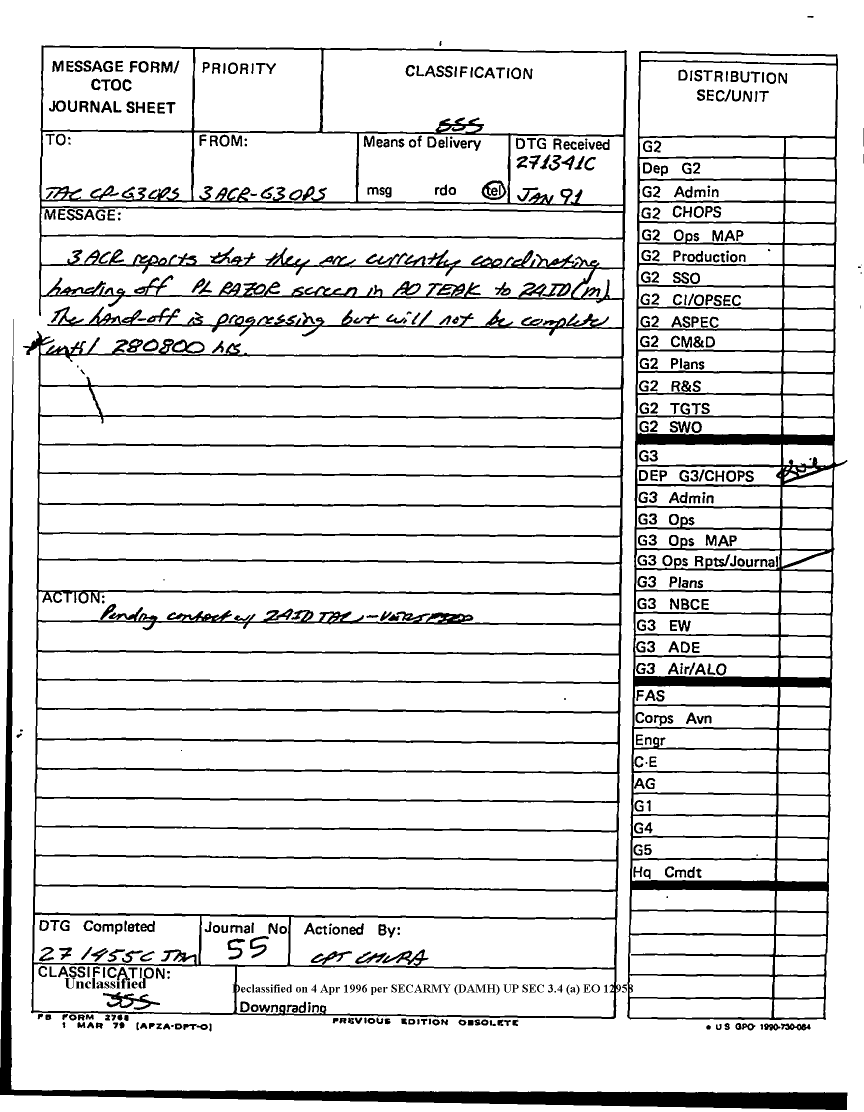 Document 55 f:/Week-12/BX000024/DUTY LOG G3 TAC CP 26 JAN 91/daily staff journal or duty officers log:04179616012061