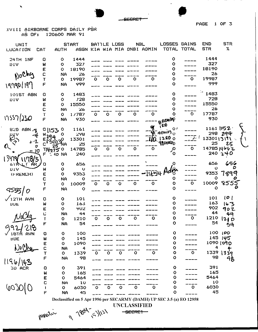 Folder Title = PERSONNEL STATUS REPORTS 11-20 MARCH 91
