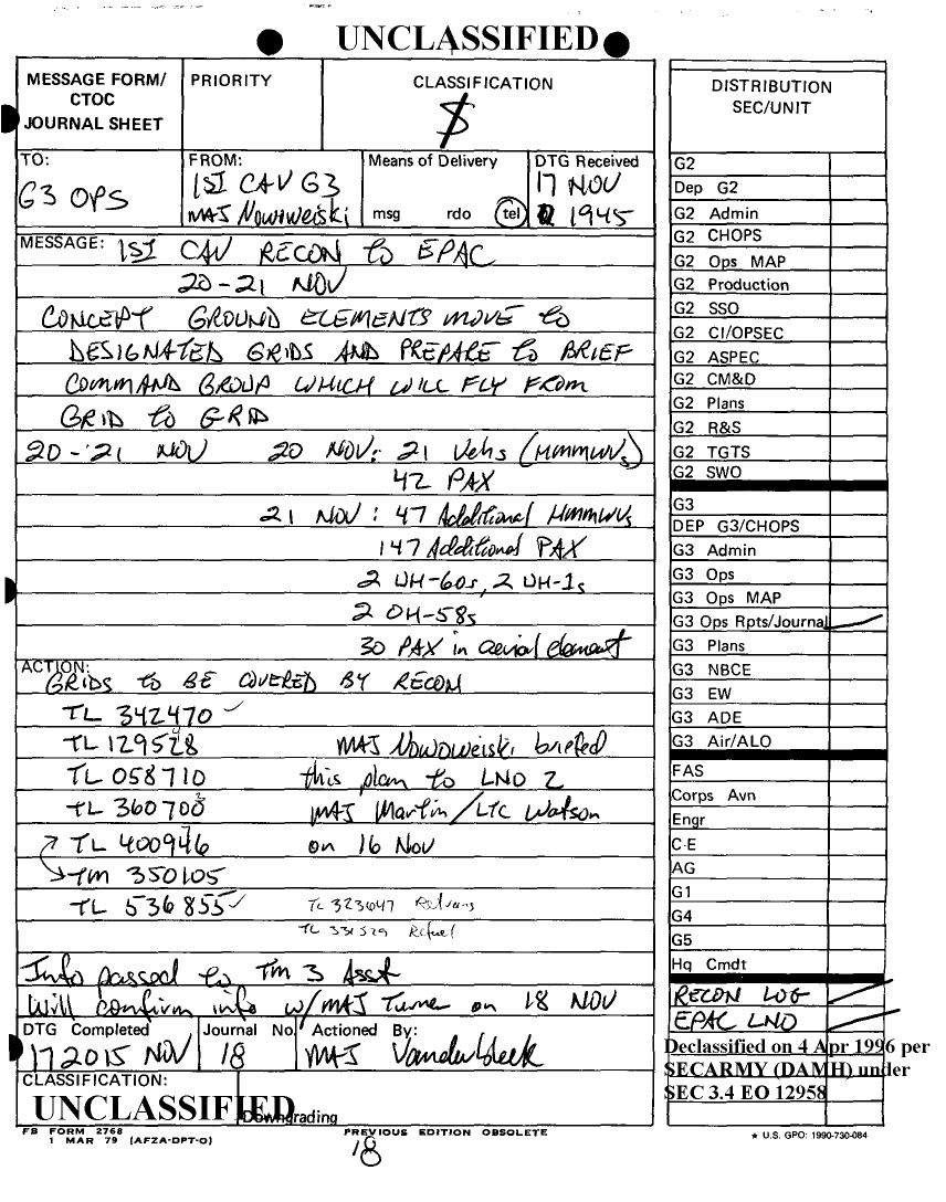 Document 81 f:/Week-12/BX000030/DUTY LOG MAIN CP G3 18 NOV 90/daily staff journal or duty officers log:04179616012086