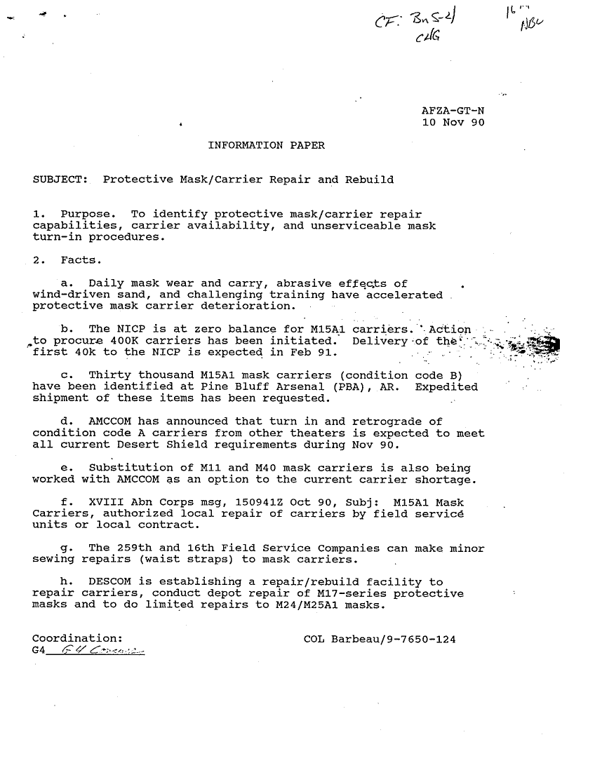 Subject = PROTECTIVE MASK CARRIER REPAIR AND REBUILD