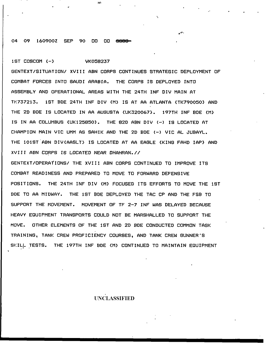 Subject = DAILY STAFF JOURNAL OR DUTY OFFICERS LOG 16 SEP 90
