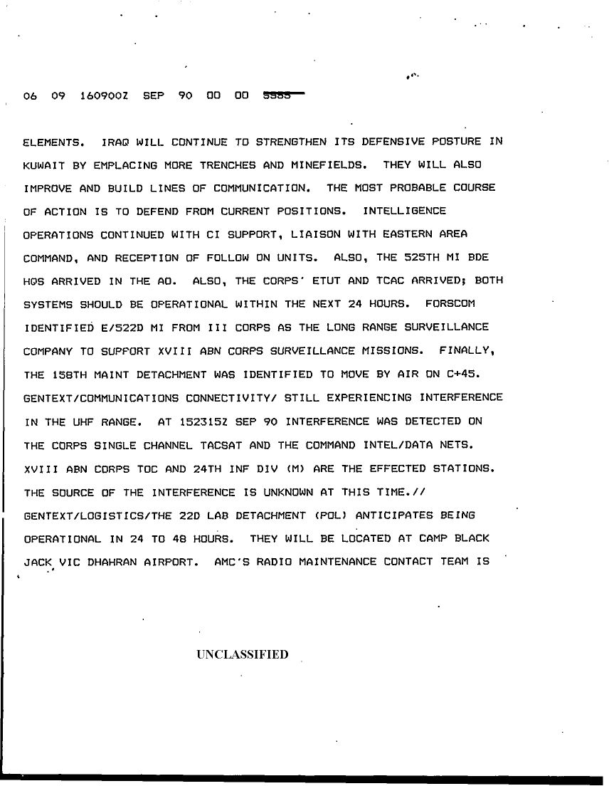 Subject = DAILY STAFF JOURNAL OR DUTY OFFICERS LOG 16 SEP 90