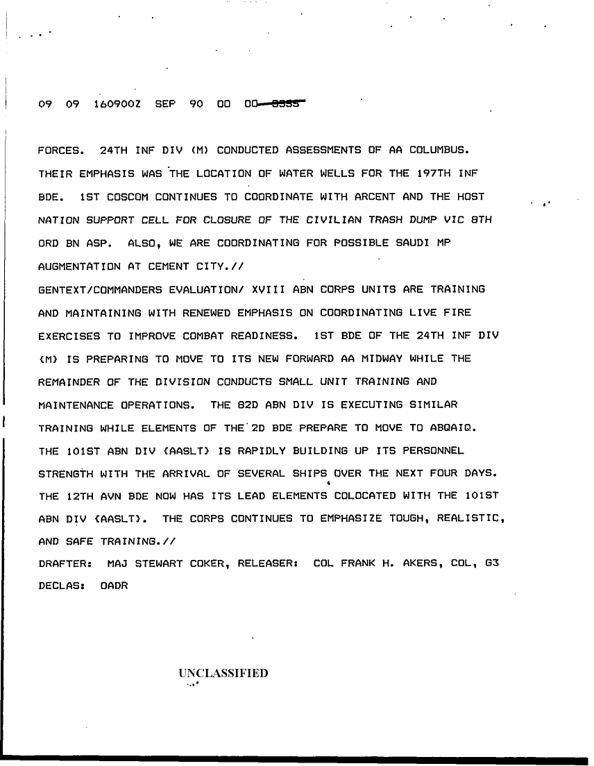 Document 23 f:/Week-13/BX000005/DUTY LOG G5 16 SEP 90/daily staff journal or duty officers log 16 sep :05039613321938