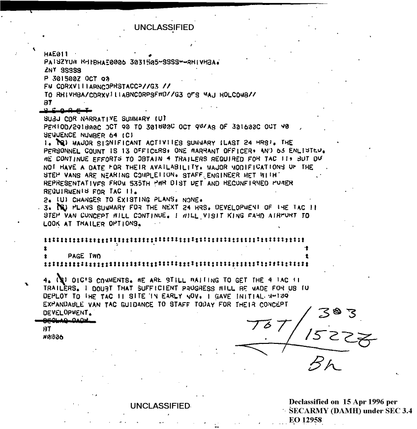 Document 12 f:/Week-14/BX000007/DUTY LOG G3 TAC CP 30 OCT 90/daily staff journal or duty officers log:05039613321952
