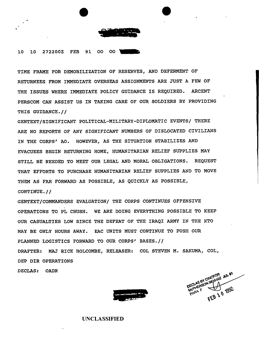 Folder Title = SITUATION REPORTS FEB-MAR 91