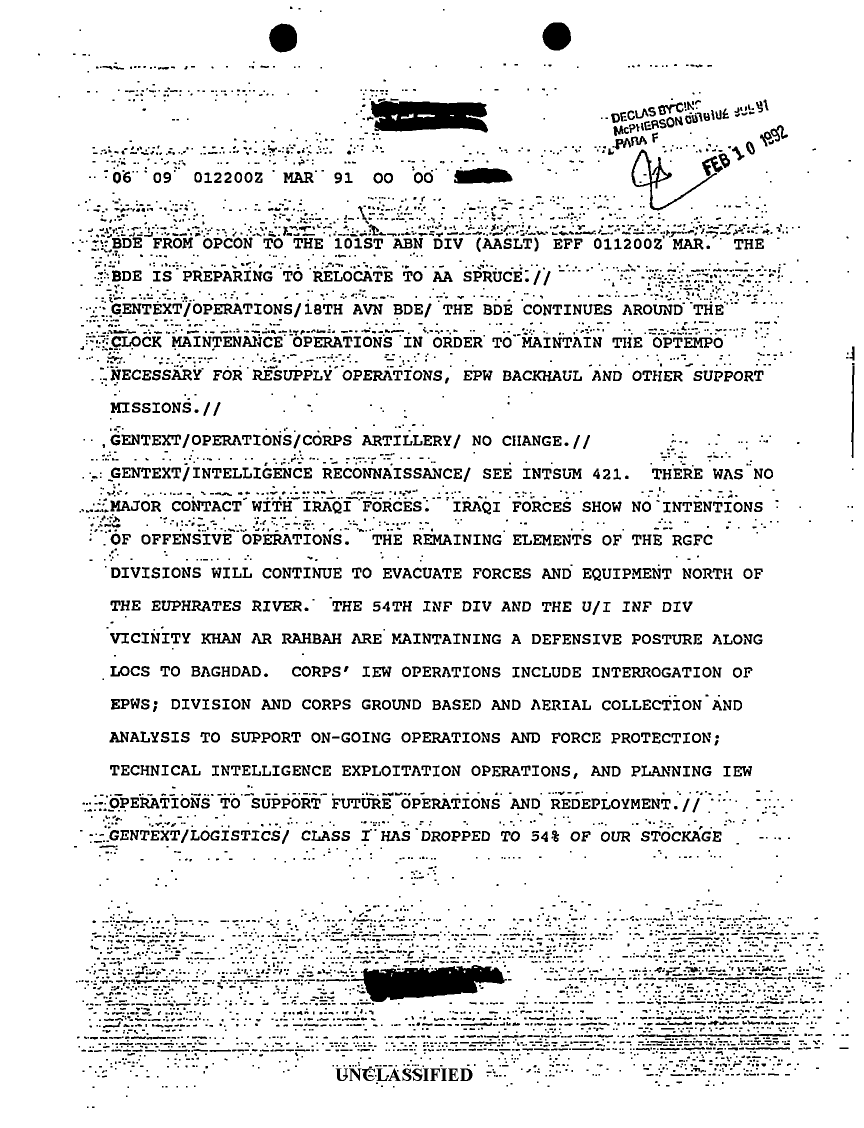 Document 8 f:/Week-14/BX000042/SITUATION REPORTS FEB-MAR 91/sitrep xviii abn corps 001 mar 91:05039613321962