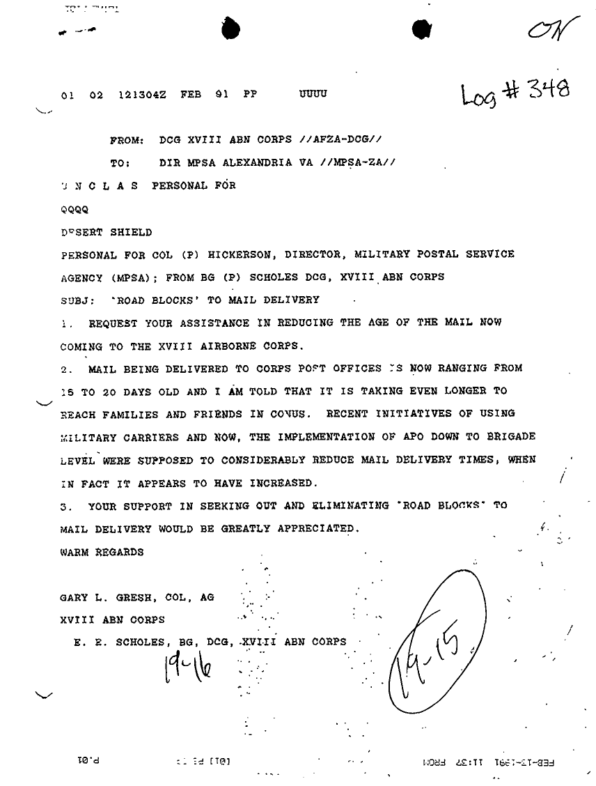 Document 31 f:/Week-16/BX000006/DUTY LOG G1 11-20 FEB 91/daily staff journal or duty officers log:05309618571751
