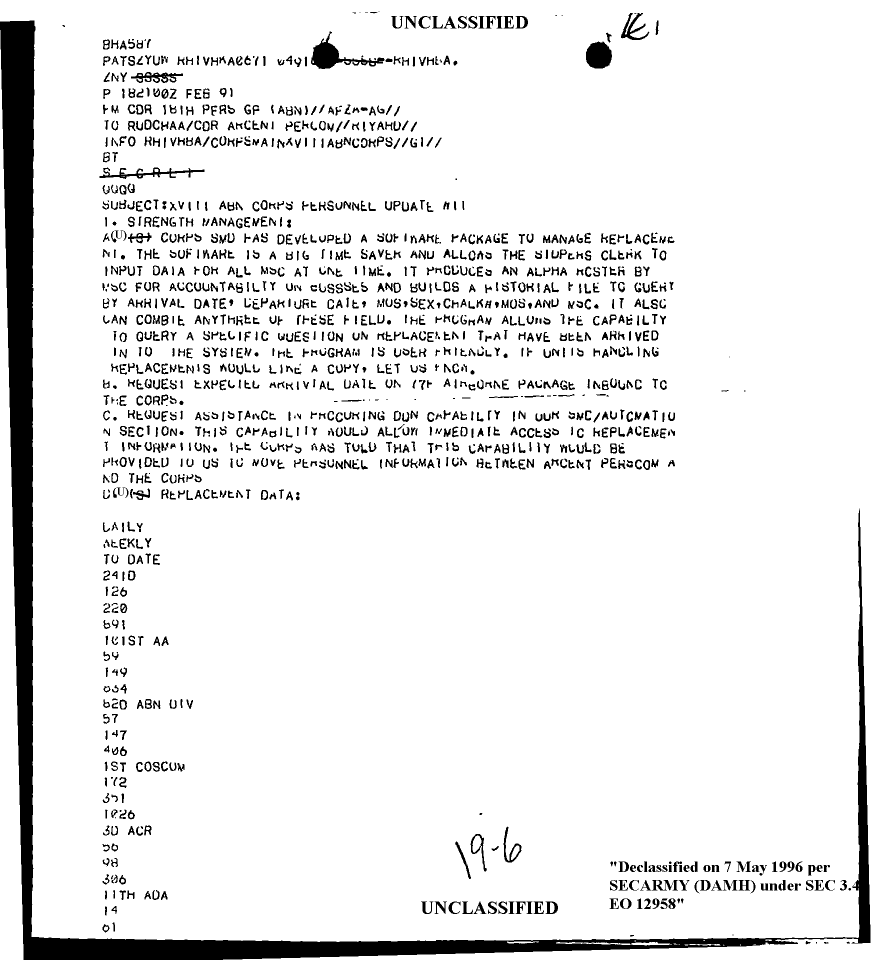 Document 31 f:/Week-16/BX000006/DUTY LOG G1 11-20 FEB 91/daily staff journal or duty officers log:05309618571751