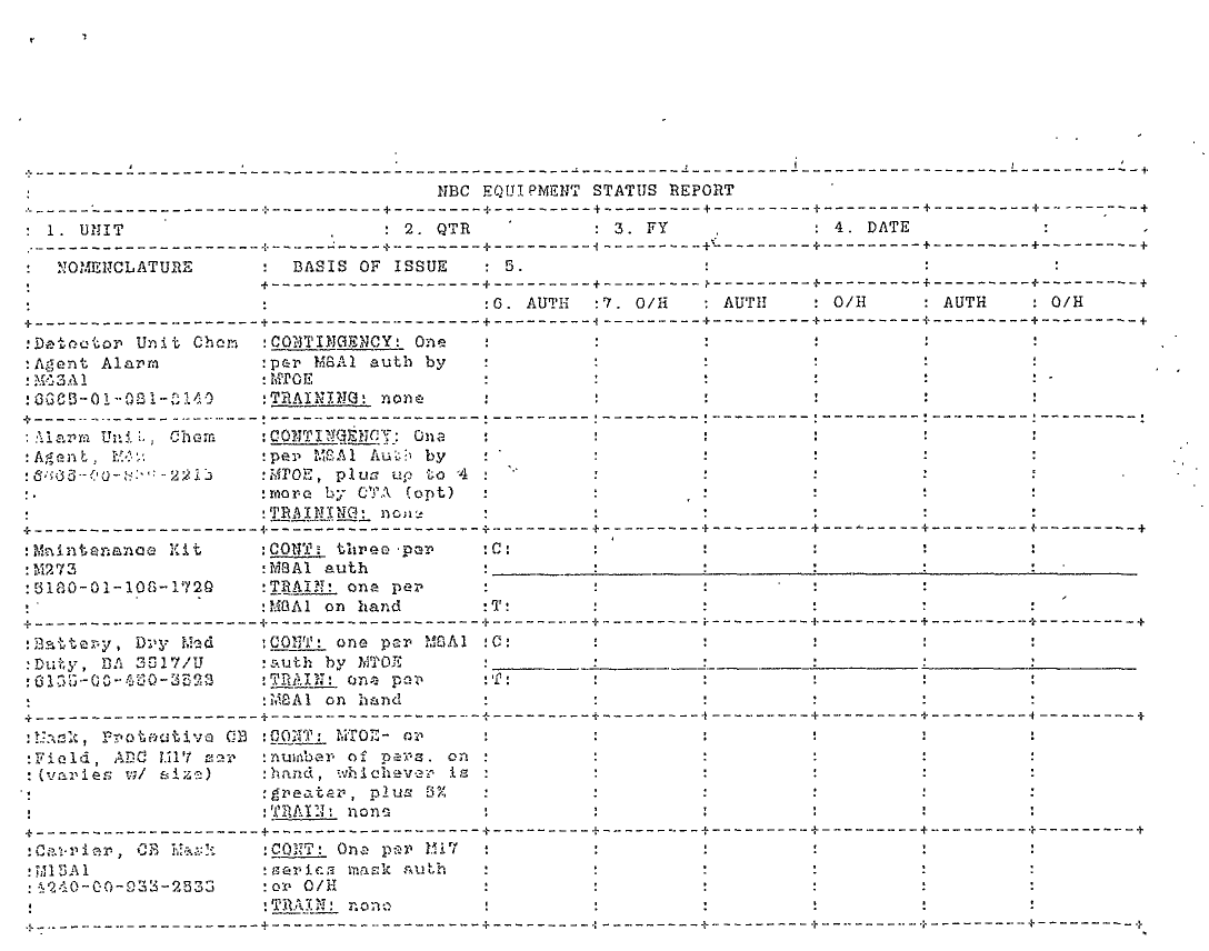 Document 6 f:/Week-15/BX000047/CHEMICAL DEFENSE EQUIPMENT CDE/ndc equipment status report:05309618571757
