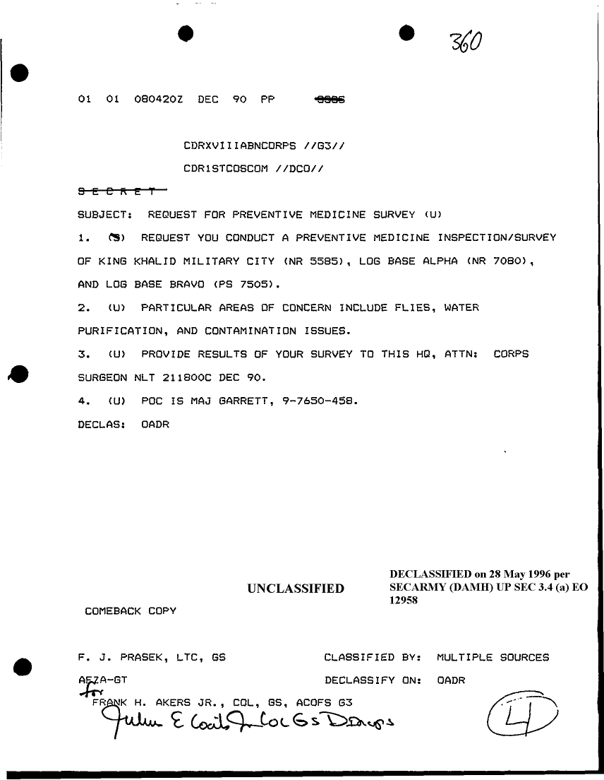 Document 1 f:/Week-15/BX000052/DUTY LOG G3 1-15 DEC 90 CONT/request for preventive medicine survey:05309618571766