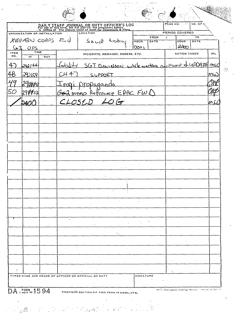 Document 12 f:/Week-16/BX000053/DUTY LOG G3 MAIN CP 29 DEC 90/daily staff journal or duty officers log:05309618571745