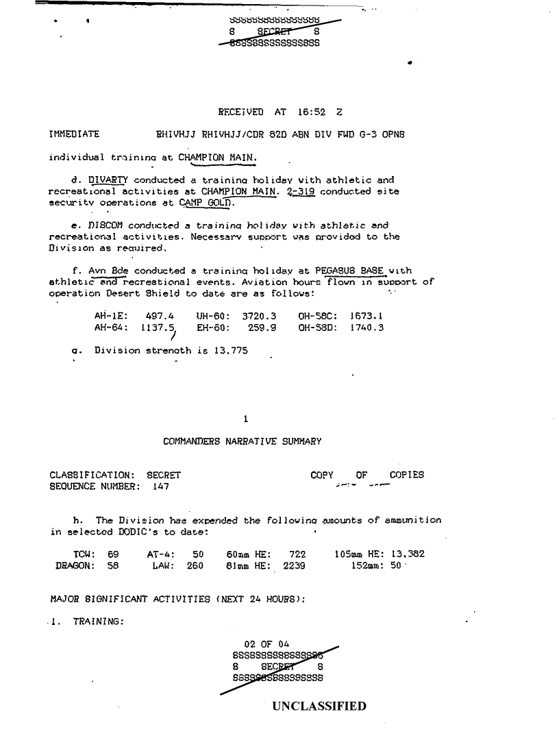Document 44 f:/Week-08/BX000015/DUTY LOG 82 AB DIV SITREPS G3 JAN 91/commanders narrative summary:05309618571721