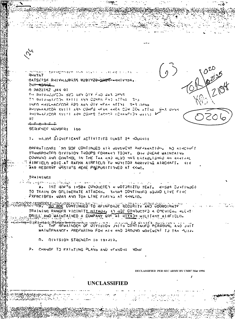 Folder Title = DUTY LOG 82 AB DIV SITREPS G3 JAN 91