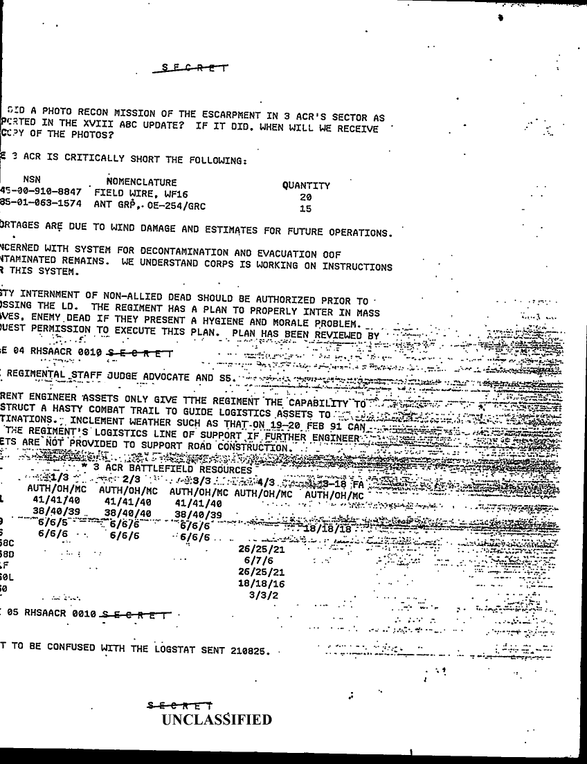 Document 4 f:/Week-08/BX000015/DUTY LOG 3 ACR SITREPS G3 FEB 91/commanders daily sitrep 21 feb 91:05309618571710