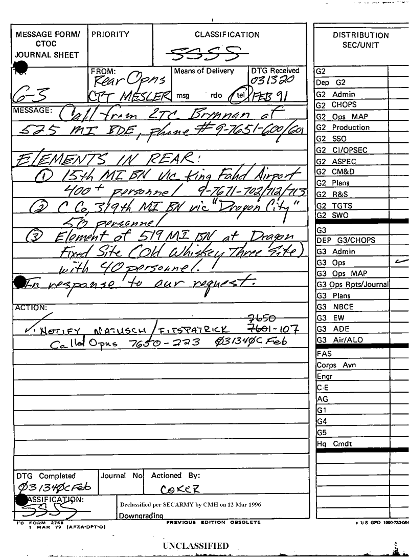 Document 14 f:/Week-09/BX000019/DUTY LOG G3 REAR 4 FEB 91/message form:05319611394110