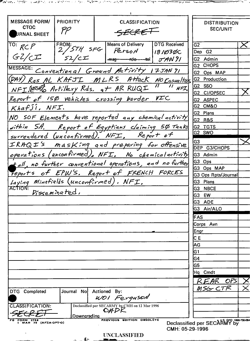 Document 1 f:/Week-09/BX000019/DUTY LOG G3 REAR 18 JAN 91/message form conventional ground activity:05319611394118