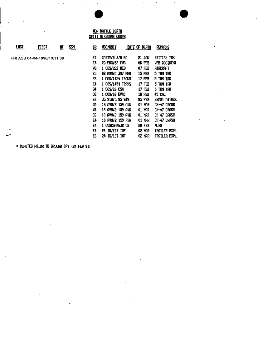 Document 6 f:/Week-12/BX000004/PERSONNEL STATUS REPORTS 1-10 MARCH 91/casualty information:05319611394126