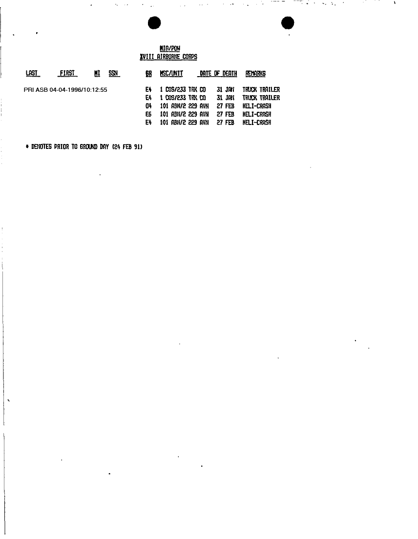 Document 6 f:/Week-12/BX000004/PERSONNEL STATUS REPORTS 1-10 MARCH 91/casualty information:05319611394126