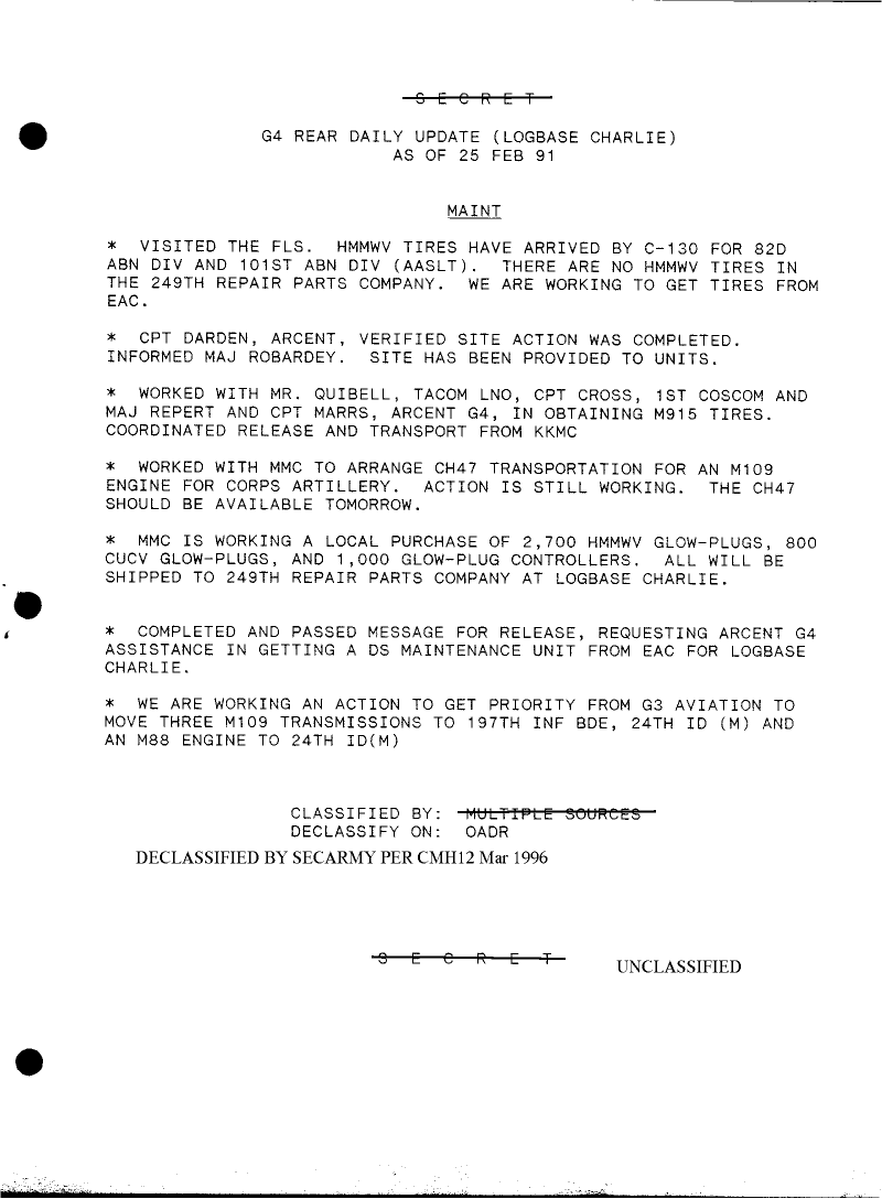 Subject = GR REAR DAILY UPDATE LOGBASE CHARLIE AS OF 25 FEB 91