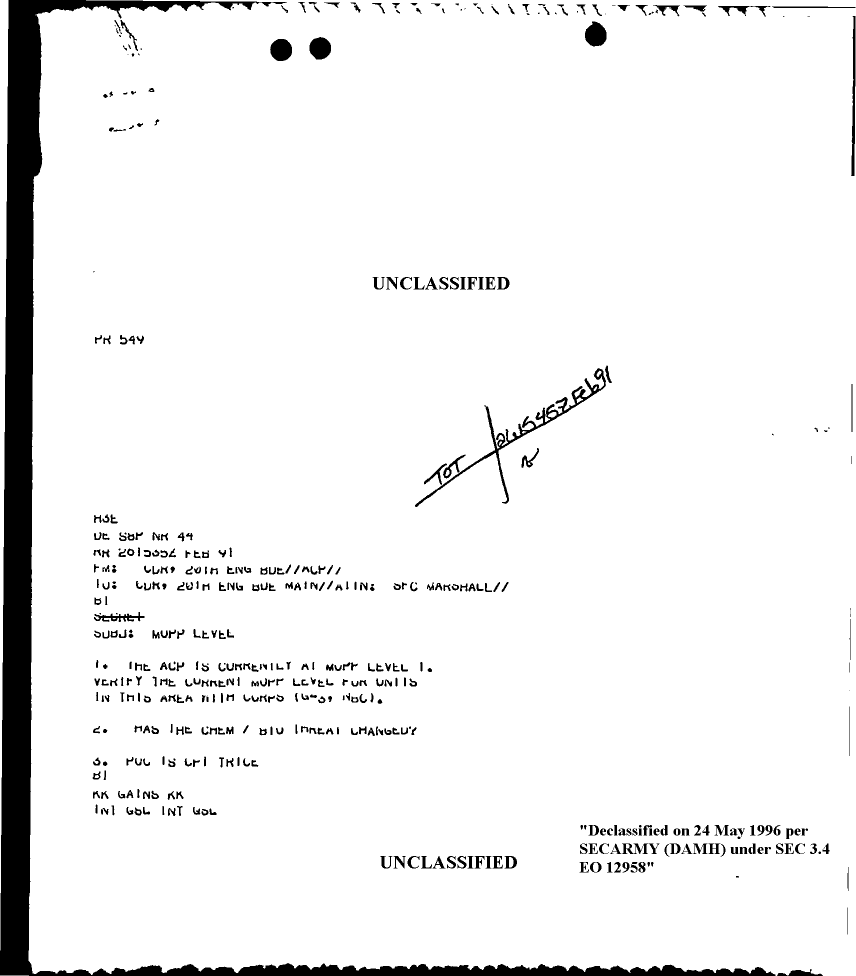 Document 3 f:/Week-18/BX000057/DUTY LOG MAIN CP MESSAGES 20 ENGINEER BDE 26 FEB 91/mopp level:06079615285220