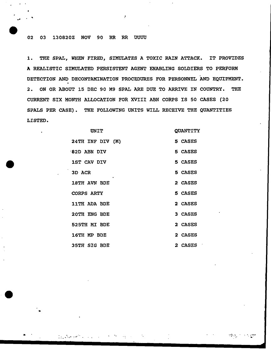 Document 3 f:/Week-15/BX000052/DUTY LOG G3 1-15 NOV 90 CONTINUED/liquid airburst projectile simulator m9 spal:06079615285221