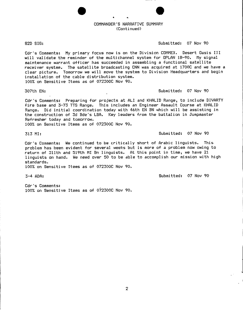 Subject = COMMANDERS NARRATIVE SUMMARIES NOV 90