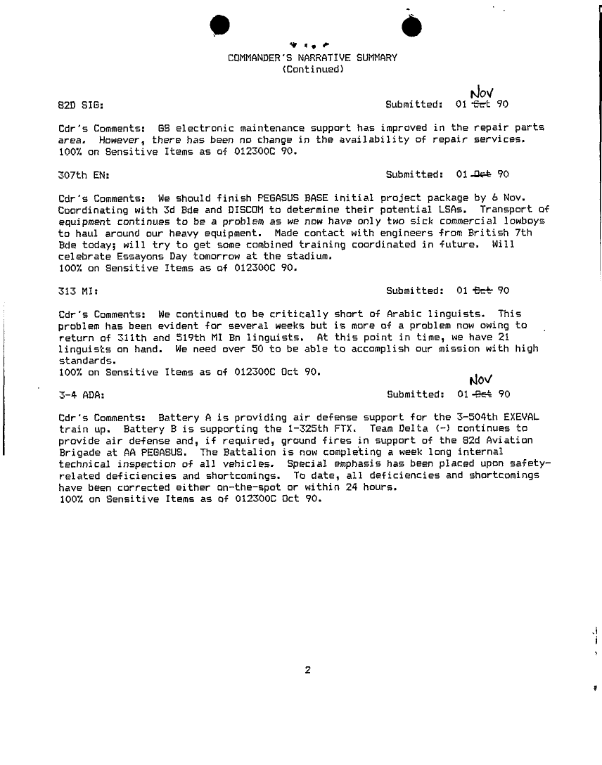 Subject = COMMANDERS NARRATIVE SUMMARIES NOV 90