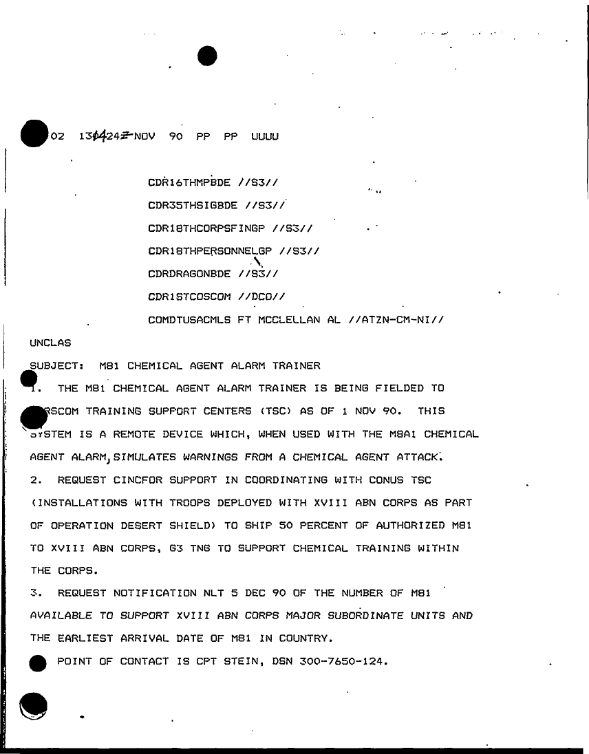 Document 2 f:/Week-15/BX000052/DUTY LOG G3 1-15 NOV 90 CONTINUED/mb1 chemical agent alarm trainer:06079615285243