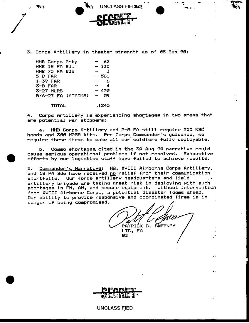 Document 2 f:/Week-18/BX000038/DUTY LOG 18 CORPS ARTY SITREPS SEP 90/commanders narrative for 5 sep 90:0607961528529