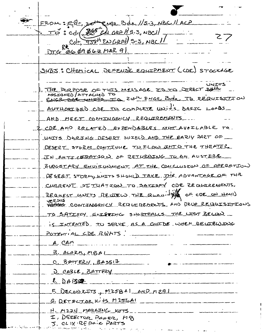 Document 6 f:/Week-18/BX000057/DUTY LOG MAIN CP MESSAGES 20 ENGINEER BDE 6 MAR 91/chemical defense equipment cdr 93rd en grph 9 :06219615523138